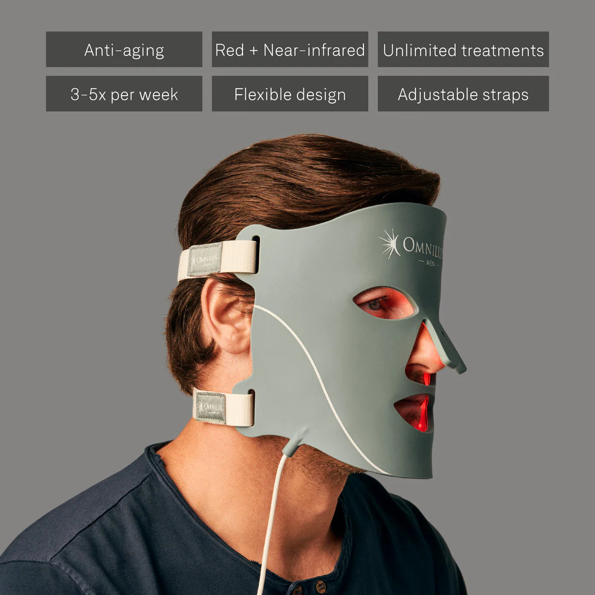 Omnilux Men perustuu maailman johtavaan Omnilux Medical™ -valoterapiateknologiaan. FDA:n hyväksymä, joustava ja kannettava laite tarjoaa edullisen ja tehokkaan ratkaisun kotikäyttöön. Se hyödyntää lääketieteellisiä LED-valoja vähentämään juonteita ja ryppyjä sekä parantamaan ihon sävyä, kiinteyttä ja yleistä terveyttä.
